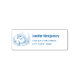 Name and address stamp with an adorable illustration. A blue and purple dolphin surrounded by pretty colourful underwater plants.