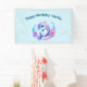 Birthday banner with an adorable illustration. A blue and purple dolphin surrounded by pretty colourful underwater plants.