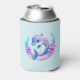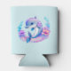 Can cooler with an adorable illustration. A blue and purple dolphin surrounded by pretty colourful underwater plants.
