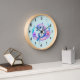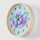 A clock with an adorable illustration. A blue and purple dolphin surrounded by pretty colourful underwater florals.