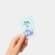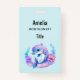 Name badge with an adorable illustration. A blue and purple dolphin surrounded by pretty colourful underwater plants.