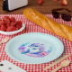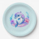 Paper plates with an adorable illustration. A blue and purple dolphin surrounded by pretty colourful underwater plants.