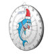 This cute happy dolphin is wearing a funny Santa hat. Drawn in fun cartoon style.