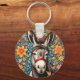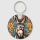 Cute Donkey On Colorful Floral Background Key Ring