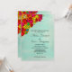A cute and youthful wedding invitation. A cute hand drawn doodle graphic with colourful red and pink love hearts, flowers and squiggles outlined in black ink set on an orange border. The background is a pale green parchment design. Girly and whimsical.