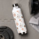 The bottle looks even better in real life. The ice cubes I put in lasts all day! I have my bottle with me all the time. It's summer and having something cold to drink feels amazing. With this bottle I always have something super cold. I have only tried the hot drink once and it lasted a long time as well. The color blue is a navy blue and the white printed on it is vibrant. It printed perfectly. I love my personalized smile water bottle.