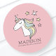 Cute Doodle Unicorn and Stars Birthday Classic Round Sticker
