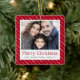 Cute dotted stripes merry Christmas red photo Ceramic Ornament