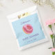 Cute blue Baby Shower Favour Bag featuring a pink doughnut in watercolor. It’s very easy to customise, with your personal details.