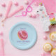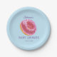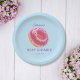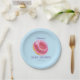 Cute blue Baby Shower Paper Plates featuring a pink doughnut in watercolor. It’s very easy to customise, with your personal details.