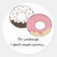 A playful sticker declaring 'on weekends calories don't count' alongside two scrumptious doughnuts adorned with frosting and sprinkles.