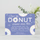 Cute, fun doughnut invitations for a doughnut or dessert themed engagement party or couples wedding shower. Featuring white doughnuts with colourful sprinkles on a blue background, including a funny doughnut diamond ring - a doughnut with a sparkly diamond like an engagement ring, with a punny "You DONUT wanna miss this!" design. You can even change the background colour by using the Customise / Personalise tool.