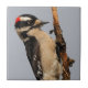 Cute Downy Woodpecker on Fruit Tree Ceramic Tile