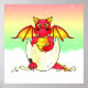 Cute Dragon Baby in Cracked Egg - Red / Yellow Poster