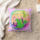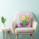 Cute Green Dragon Throw Pillow with customisable name "Natalie". A cute green cartoon dragon with colourful colour stars, wings and big star tail and a green flying fire breathing dragon in the sky against purple pink mountains with colourful rainbow colour rings pink background colour and fully customisable name "Natalie" on both sides throw pillow. This super adorable cartoon dragon pillow is fully customisable, add your name, texts and images! An amazing dragon gift for the big little dragons fans!