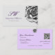 Cute Drawn Rose Plain Grey Lilac Initials QR Code Business Card