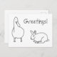 Cute and simple drawing of a duck looking down at a rabbit, with the text, Greetings, is printed on colouring postcards. The text can be easily customised on the template form. Fun idea for Easter and anytime for some colouring fun. Thank you for shopping at CherylsArt on Zazzle.