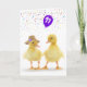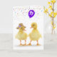 Cute yellow duckings with a purple 77th birthday balloon and party confetti on a white background.