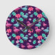Cute Duck Floral Pattern Kawaii Pink Blue Ducks Round Clock