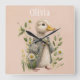 Rustic woodland little girl duck dressed in tattered flowered overcoat with floral accents all around. Faux pink background. Add your choice of name to personalise. Just so sweet.