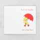 A playdate is always a fun way to gather children for a fun activity. With a white background there is a duck holding a red umbrella. "Let's get together" "for a playdate" is written in fun red font. There is a cute message inside.