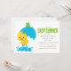 This adorable baby shower invitation features a cute yellow duckie holding a blue polka dot umbrella, standing in a puddle of water. There's a little green frog sitting on top of the umbrella. The word "baby shower" sits next to the duckie in a matching green colour. Your baby shower details are completely customisable. Graphics ©prettygrafix