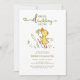 A cute baby shower invitation featuring "One sweet little duckling is on its way" in delicate green modern typography and stylish script, plus a sweet drawing from a duckling.