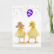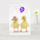 Cute yellow duckings with a purple 25th birthday balloon and party confetti on a white background.