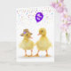 Cute yellow duckings with a purple 70th birthday balloon and party confetti on a white background.