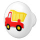 Cute toy dump truck door and drawer pull knobs or handles for cabinets in nursery room. Colourful red dumptruck vehicle icon design with customisable background colour. Make your own construction themed interior for newborn boy or girl. Fun DIY accessories and decorations for little builder kids room, baby room, kitchen, bathroom, bedroom, children's play room etc. Also nice for creating a small coat rack.