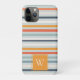 Cute Dusky Orange Blue Striped Pattern Monogram Case-Mate iPhone Case