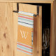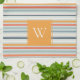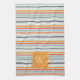Cute Dusky Orange Blue Striped Pattern Monogram Tea Towel