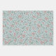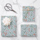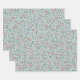 Farmhouse country dusty blue, red and dark green foliage, wreath, leaves, greenery, rustic pattern cute holiday gift wrapping paper sheets. Set of 3.