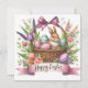 Cute Easter Basket Bunny Floral Illustration Holiday Card