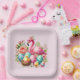 Cute Easter beach pink flamingo party Paper Plate