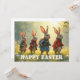 A delightful Easter scene featuring four adorable bunnies walking through a sunny spring meadow. Dressed in charming outfits, they bring warmth, joy and a playful atmosphere perfect for celebrating Easter and the beauty of the season.