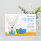 © 2021 Socialite Designs. A cute bunny with eggs Easter party invitation. Great to use for an Easter brunch and egg hunt for the children, or can be customised for a child's Easter birthday.