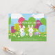 Our cute Easter egg hunt bunny rabbit  Easter party invitation features the cutest bunny rabbits holding an easter egg set on a adorable forest scene with trees, a blue sky and green grass with pretty flowers.  Customise with your personal information & you're all set to go.