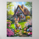 Happy Easter with this cute animals like easter bunny or baby chick. Join the easter egg hunt in spring with vibrant colours and joy, candy and a floral vintage fantasy. Cute rabbit with flowers. Cottage painting wall art.
