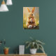Happy Easter with this cute animals like easter bunny or baby chick. Join the easter egg hunt in spring with vibrant colours and joy, candy and a floral vintage fantasy. Cute rabbit with flowers and two eggs.