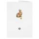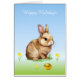 Cute Easter bunny with golden egg and flowers Happy Holidays Card. Text can be personalised for Easter or Birthday. Bunnies symbolise longevity, abundance and good fortune.
