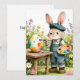 Cute Easter Bunny Painting Egg Whimsical Flat Card