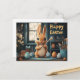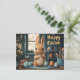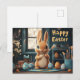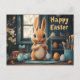 Cute Easter Bunny Painting Eggs: Springtime Art Postcard