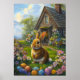 Happy Easter with this cute animals like easter bunny or baby chick. Join the easter egg hunt in spring with vibrant colours and joy, candy and a floral vintage fantasy. Cute rabbit with flowers.