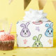 This design features a pattern of cute rabbits and paw prints in pink, blue, green and yellow. Perfect for Easter or baby shower.
