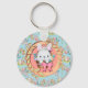 Cute Easter Bunny Sitting in The Basket Key Ring