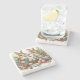 The coasters are gorgeous, a quality feel and heavy weight. They look like a precious archeological find. A rustic stone juxtaposed with a modern floral black and white print. I like the way the print goes slightly imperfect on the cut stone edges giving them a kind-of natural beauty.