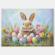 A delightful Easter bunny surrounded by brightly coloured eggs, exuding charm and festive joy in a sweet, playful scene.