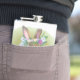 The flask itself is fine. It’s a cheap flask, obviously bought in bulk, however am prepared to overlook that. Given that it is a personalized item, I would have liked to have seen gift boxing instead of the generic packaging. Terrible printing, and/or quality. It’s a cheap, tacky vinyl. It is not cut straight and is also applied in a way that it is overhanging the bottom, causing the glue to catch on items and it will eventually roll and tear, damaging the wrap.