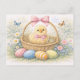 Cute Easter Chick in Basket Watercolor Postcard